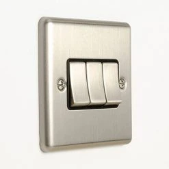 Revive Lighting Revive 3 Gang 2 Way Light Switch – Satin Steel
