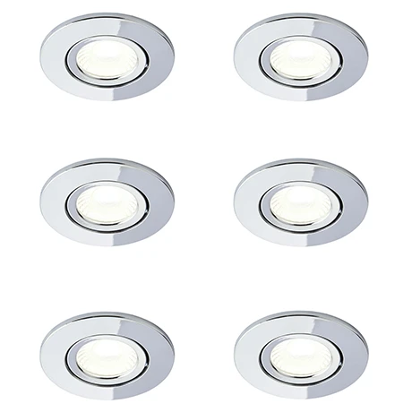Pack of 6 Revive Chrome IP65 LED Fire-Rated Tiltable Downlight