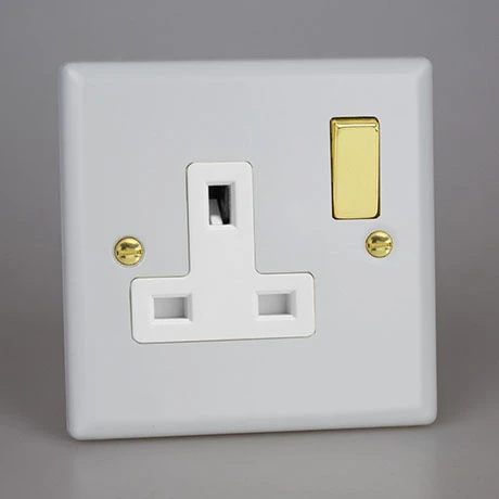 Revive 1 Gang Switched Socket – Matt White/Brass