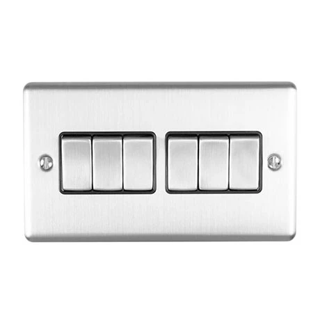 Revive 6 Gang 2 Way Light Switch – Satin Steel