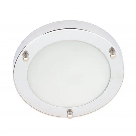 The Revive small flush bathroom ceiling light is a stylish light fitting ideal for the modern bathroom. It features a chrome finish round ceiling plate and a domed opal glass shade. The light takes a standard E14 candle lightbulb for ease of replacement. Its IP44 rating makes it suitable for use in the bathroom.