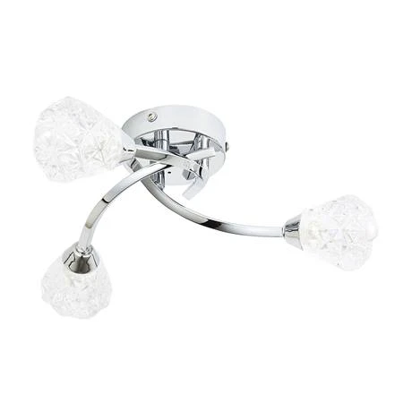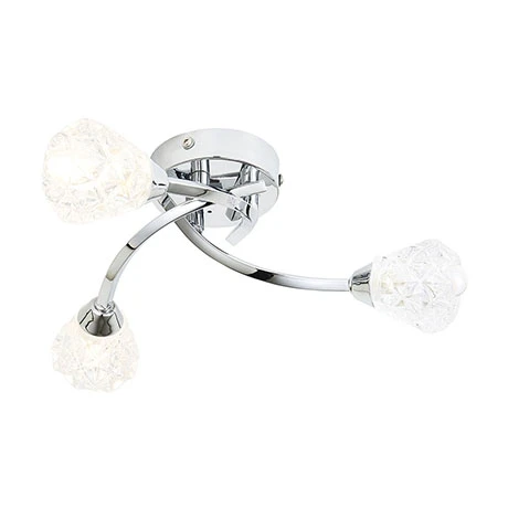 The Revive Chrome 3-Light Bathroom Ceiling Light is a stylish and contemporary bathroom light. It features sweeping arms and diamond cut glass designed shades. The light takes 3 x G9 LED lamps for ease of replacement. Its IP44 rating makes it suitable for use in the bathroom.