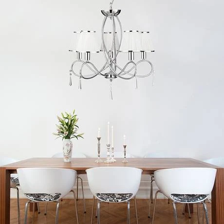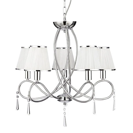 Truly outstanding chrome ceiling lights, such as this option from Revive, can completely transform a space. A modern 5 light ceiling light with glass crystal drops and swirling chrome arms, the Revive simply exudes luxury. Five white string shades with elegant chrome trim cover complete the look.