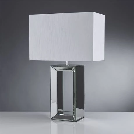 With its stylish faux-silk shade and eye-catching mirrored design, this chrome table lamp is a luxurious option for all stylish modern spaces. A wonderfully unique mirror table lamp with a hollowed centre that will serve to open up your space.
