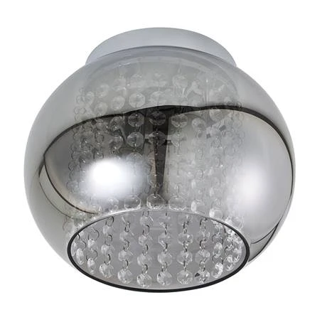 The Revive 2-light cloche bathroom ceiling light is a stylish and contemporary bathroom light. It features a polished chrome ceiling plate and smoked glass shade with decorative crystal glass droplets. The light takes 2 x G9 LED lamps for ease of replacement. Its IP44 rating makes it suitable for use in the bathroom.