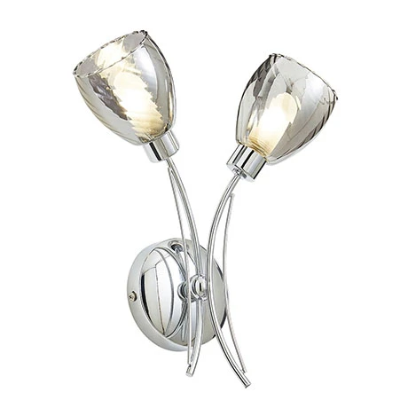 The Revive 2-light bathroom wall light is a stylish and contemporary bathroom light. It features a polished chrome wall plate with curved arms and smoked glass shades. The light takes 2 x G9 LED lamps for ease of replacement. Its IP44 rating makes it suitable for use in the bathroom.