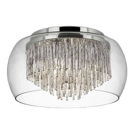 A flush ceiling light for those with distinctive tastes, this Revive option can serve as a highly stylish focal point in any living room or bedroom. The truly unique light features splendid suspended aluminium rods encased in a large curved glass ceiling shade.