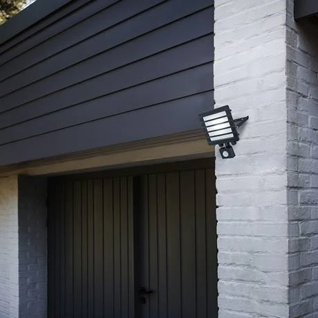The slimline Revive Outdoor 20W PIR LED Slim Security Light is a powerful flood light constructed from die cast aluminium. Featuring chip on board LED, the light features a dark skies at night feature and has adjustable time and range. The PIR motion sensor can detect movement up to 12 metres away and has a 120° detection range. Its loop in loop out wiring makes it simple to install while the the light emits a strong warm white light with an output of 1800 lumens.