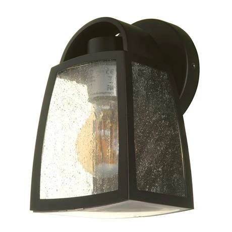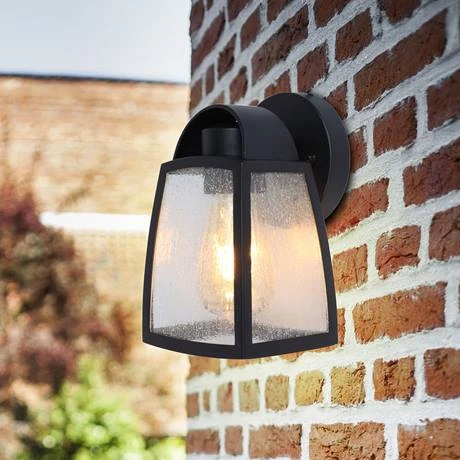 Revive Outdoor Small Matt Black Wall Light with Seeded Glass Diffuser