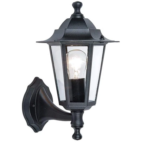 This outdoor matt black wall mounted lantern creates a cozy and traditional look. The latern is constructed from heavy duty die-cast aluminium with a transparent impact proof polycarbonate diffusor. Fitted with an E27 fitting, the lantern is suitable for use with smart bulbs.