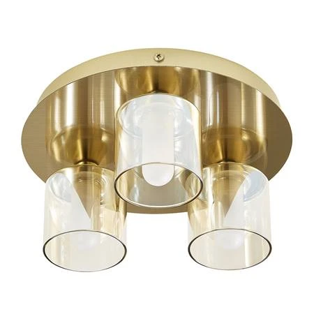 The Revive 3-Light Plate Bathroom Ceiling Light is a stylish and contemporary bathroom light. It features a satin brass ceiling plate with champagne glass shades. The light takes 3 x G9 LED lamps for ease of replacement. Its IP44 rating makes it suitable for use in the bathroom.
