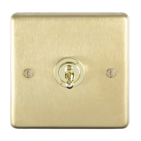 The Revive Single Toggle Light Switch features rounded edges for a contemporary look. Made from high quality materials, this accessory is styled in a modern design and has a Brushed Brass finish.