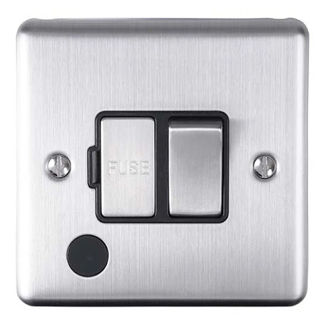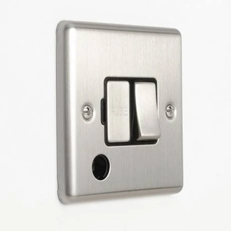Revive 13 Amp Switched Fused Spur with Flex Outlet Satin Stainless Steel/Black Trim