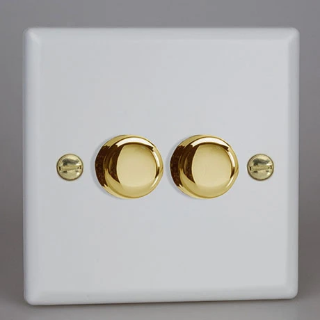Revive Twin Dimmer Light Switch – Matt White/Brass