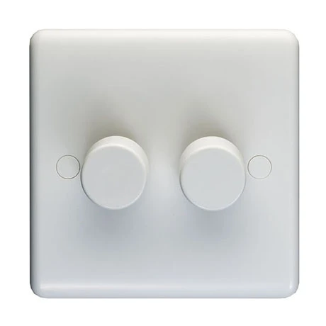 The Revive Twin Dimmer Light Switch is stylish and practical. Made from high quality materials, this accessory is styled in a modern design and has a classic white finish.