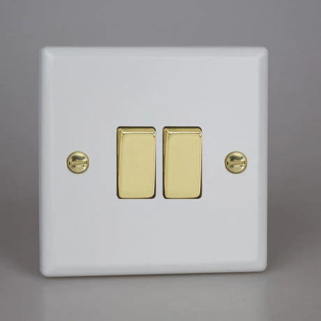 The Revive Twin Light Switch features bevelled edges for a contemporary look. Made from high quality materials, this accessory is styled in a modern design and has a Matt White effect finish.