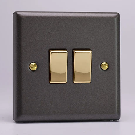 The Revive Twin Light Switch features bevelled edges for a contemporary look. Made from high quality materials, this accessory is styled in a modern design and has a slate grey effect finish.