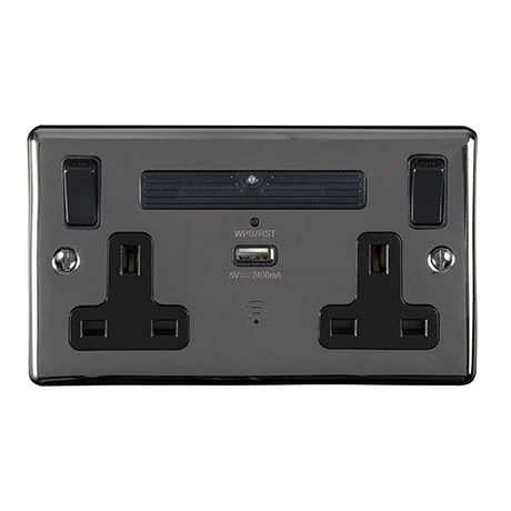 Revive Twin Plug Socket with USB Outlet & WIFI Extender – Black Nickel/Black Trim